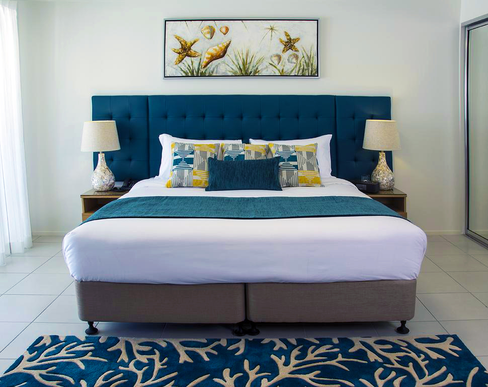 The One Bedroom Apartment Swim Out room is fully self-contained, featuring one comfortable king bed . A range of fabulous amenities fully-equipped kitchenette, and laundry. Inside and outside dining areas, including a spacious lounge room. All with beautiful new decor, it'll make your stay feel like a home away from home. You'll be well-equipped to soak up the resort lifestyle with a patio and direct access to the beautiful lagoon swimming pool.